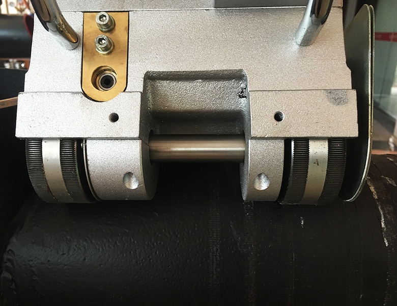 本機器體積小,重量輕,一體化機身堅固耐用,低重心設局,內部放置高強磁鐵,鐵磁輪爬行,行走平穩(wěn)。本機具有切割圓周特好,操作方便,可在水平,垂直仰面上切割。