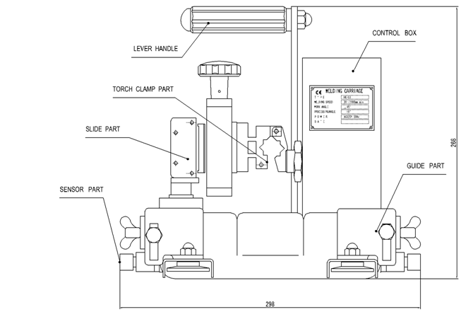 8)SENSOR PART:感應停止開關。焊接到工件末端時被觸動后小車自動停止工作。