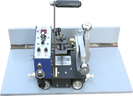 HK-5C由小車本體,X-Y滑塊,導向輪,焊槍夾具、感應開關停止開關,磁控手柄,控制箱等部件組成。