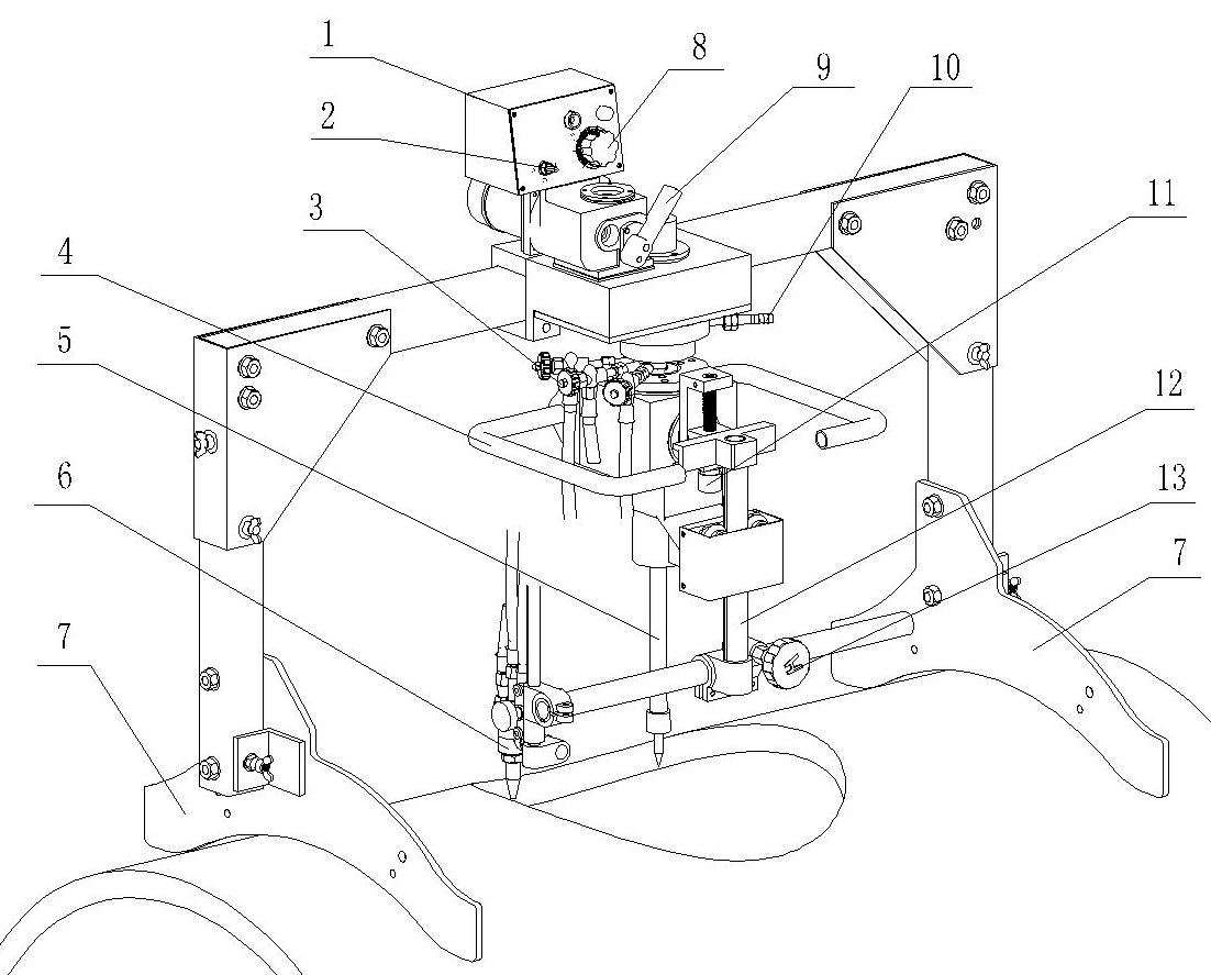 “HK-600D”便攜式管孔氣體切割機(jī),此裝置主要用于高壓容器,熱交換器的相交,連接管孔的T形接頭的高精度切割。管道相交焊接需要在主管(筒體)開(kāi)孔切割。該機(jī)器是通過(guò)割炬自動(dòng)上升/下降的自鎖機(jī)構(gòu),利用三角學(xué)的原理使機(jī)械裝置能夠精確跟蹤筒體曲面,來(lái)實(shí)現(xiàn)割炬運(yùn)行的軌跡。在設(shè)計(jì)上已周密的考慮,盡量減輕機(jī)器重量,便于攜帶方便。應(yīng)用無(wú)限旋轉(zhuǎn)氣體分配器,使管路不纏繞。該機(jī)器也可做普通的平面圓切斷或坡口切割。機(jī)器是由控制箱,割炬及割炬自動(dòng)上升/下降的自鎖機(jī)構(gòu),主體機(jī)架所組成。各部件都由主體機(jī)架相連。通過(guò)離合裝置,使機(jī)器的運(yùn)行部件脫離電動(dòng)裝置而實(shí)現(xiàn)手動(dòng)旋轉(zhuǎn)割炬,使割炬快速對(duì)齊切割起始點(diǎn)。機(jī)器的控制箱安裝在切割機(jī)構(gòu)頂部,操作簡(jiǎn)便,易于維修。
