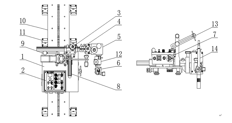3橫移裝置:在焊接直條縫(如集裝箱)利用此裝置調(diào)整焊炬位置,避免頻繁地移動導(dǎo)軌。