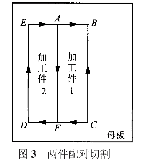 正確的切割方向應(yīng)該保證最后一條割邊與母板大部分脫離,如果過(guò)早地與母板大部分脫離,則周邊的邊角框不足己抵抗切割過(guò)程中出現(xiàn)的熱變形應(yīng)力,造成切割件在切割過(guò)程中移位,出現(xiàn)尺寸超差 [2] 。